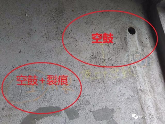 空鼓產(chǎn)生的原因主要有四個(gè):一是基層墻體表面未處理。墻體表面黏著的塵土、殘余砂漿和澆筑時(shí)的隔離劑未清理干凈,光滑的混凝土表面未涂刷界面劑或進(jìn)行噴漿拉毛,抹灰前未進(jìn)行提前灑水充分潤濕等。二是墻體養(yǎng)護(hù)時(shí)間不夠就急于抹灰。墻體未進(jìn)行充分變形就開始抹灰,基層與抹灰層收縮不一致導(dǎo)致空鼓。三是單層抹灰過厚。墻體平整度不好或有缺損時(shí),沒有提前處理,抹灰時(shí)急于求成,一次成活,抹灰層過厚,造成其收縮應(yīng)力大于砂漿黏結(jié)力,產(chǎn)生空鼓。四是抹灰材料使用不當(dāng)。抹灰砂漿強(qiáng)度與基層墻體強(qiáng)度不匹配,收縮率相差過大[2]。